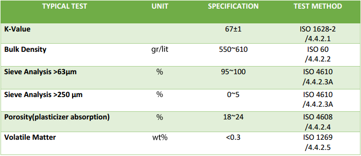 PVC K67 has following properties that makes it suitable for rigid PVC extrusion with high production rates: